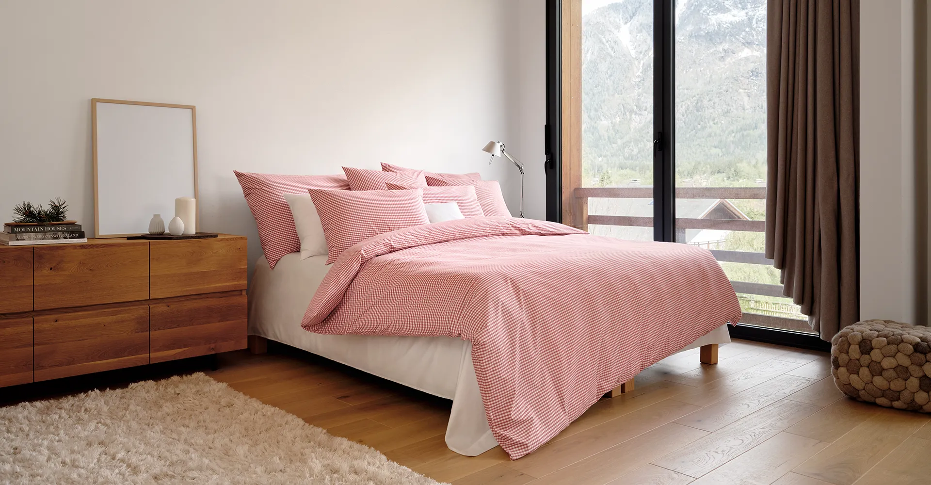 Die zeitlose Vichy-Bettwäsche ANDRIN bringt ein kontrastreiches, zweifarbiges Blockmuster mit matter Oberfläche und zeitgenössischem Flair hervor. Wie eine Hommage an die Schönheit der Tradition und die Liebe zu den Alpen präsentiert sich ANDRIN in den Farben beige, bleu, rouge und vert und ist damit gleichzeitig eine Ode an die Natürlichkeit und Gemütlichkeit, die sowohl die Geborgenheit der Berghütte als auch die Raffinesse der urbanen Ästhetik einfängt.