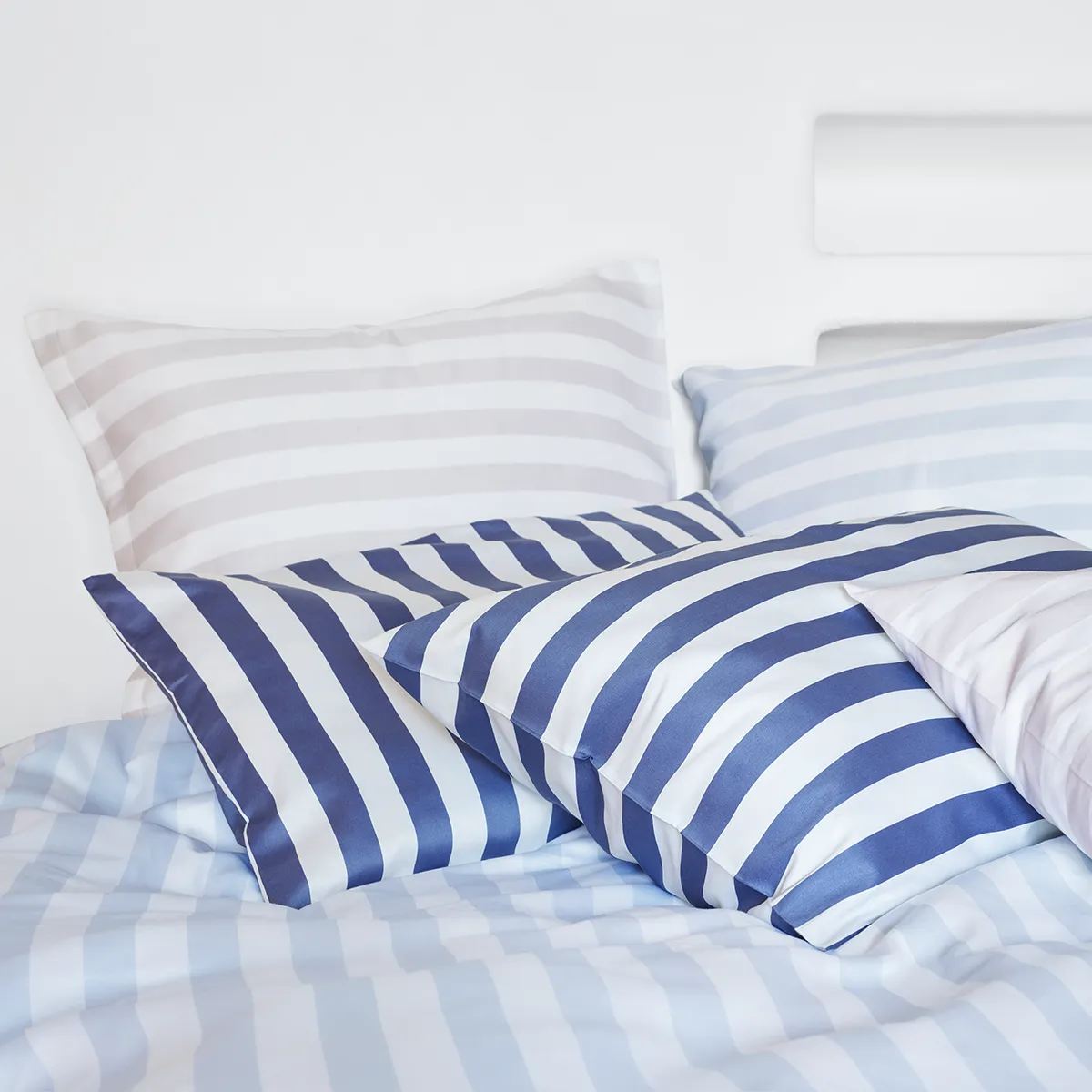 ARIS geht als beliebter Schlossberg-Klassiker für Sie neue Wege - und das in Farbe wie in Qualität: Maritimes Blau-Weiss, zartes Helllblau-Weiss sowie elegantes Beige-Weiss setzt in Blockstreifen und je nach Wahl leise bis laute Akzente in ihrem Schlafzimmer. Und das jedoch immer nachhaltig in Bio-Baumwoll-Qualität. Kombinieren können Sie das zeitlose Streifen-Muster wunderbar mit den Schlossberg-typischen Blumen-Bettwäsche-Designs oder auch passenden Unifarben, je nach Jahreszeit, Stil oder auch einfach Stimmung.