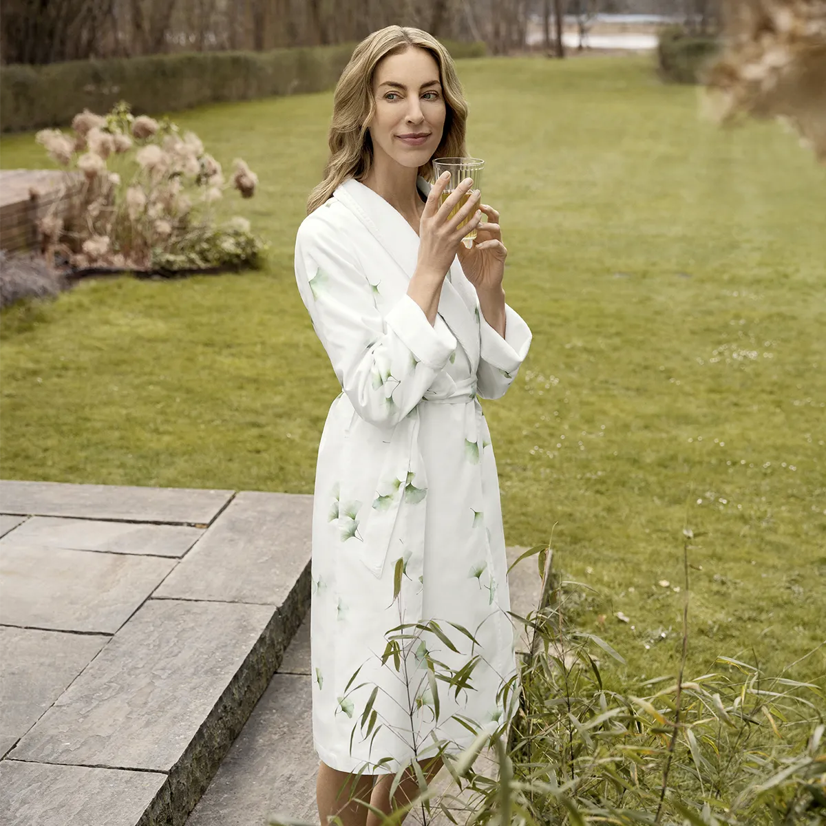 In frühen Morgenstunden wie die Ruhe selbst dem Tag begegnen, allen noch ungeahnten Möglichkeiten mutig entgegenschreiten und mit dem Charme eines Zen-Gartens durch den Alltag gehen – der AIKO Morgenmantel schenkt Ihnen zu jeder Stunde genau die richtige Balance, kombiniert einen Satin-Oberstoff mit flauschig-weichem Frottier-Innenfutter und ist mit Schalkragen, Bindegürtel sowie seitlichen Eingriffstaschen ausgestattet.