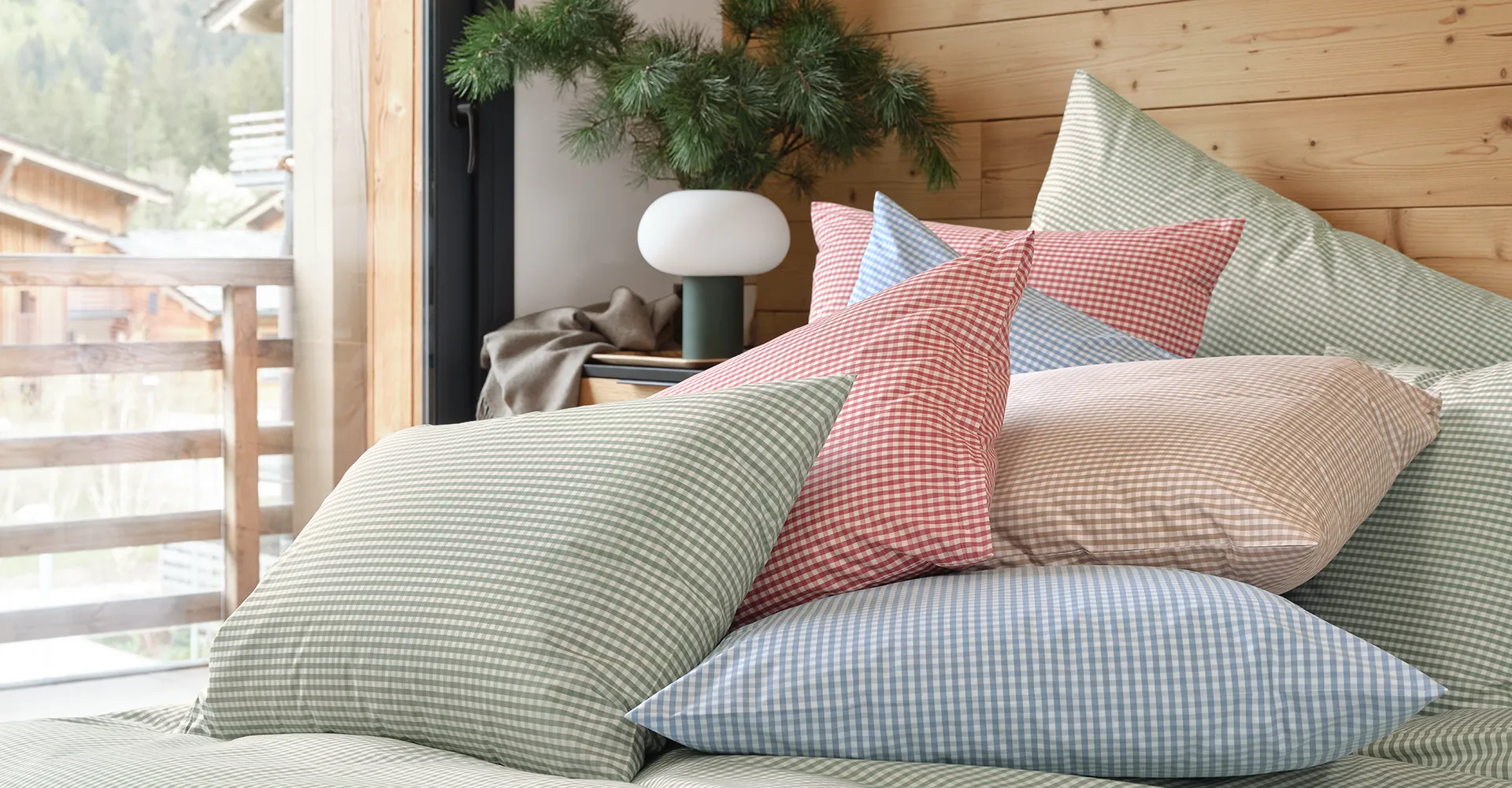 Die zeitlose Vichy-Bettwäsche ANDRIN bringt ein kontrastreiches, zweifarbiges Blockmuster mit matter Oberfläche und zeitgenössischem Flair hervor. Wie eine Hommage an die Schönheit der Tradition und die Liebe zu den Alpen präsentiert sich ANDRIN in den Farben beige, bleu, rouge und vert und ist damit gleichzeitig eine Ode an die Natürlichkeit und Gemütlichkeit, die sowohl die Geborgenheit der Berghütte als auch die Raffinesse der urbanen Ästhetik einfängt.
