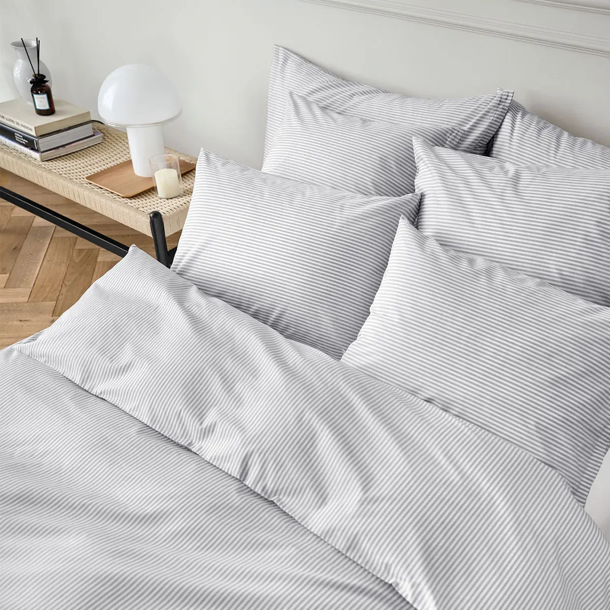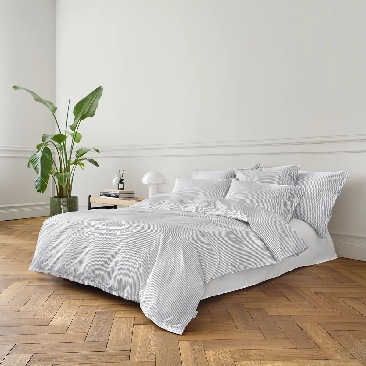 Mit der Bettwäsche BARI erinnern wir uns an die frische, elegante Leichtigkeit von maritimen Tagen. Ob sonnenbadend auf dem Segelboot, mit vergrabenen Zehen im Sandstrand oder plantschend am Badesee - das leichte Popeline-Gewebe nimmt uns mit zu den schönsten Sommererinnerungen.