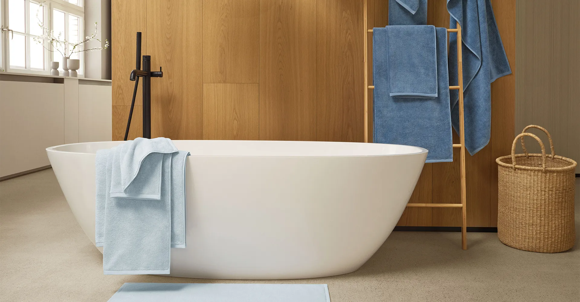 Bitte beachten Sie die unterschieldichen Pflegeetiketten bei Handtüchern, Bademantel und Badeteppich.