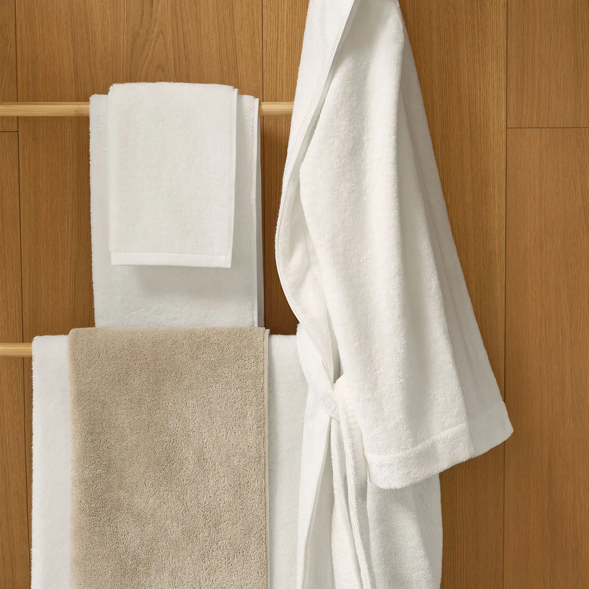Bitte beachten Sie die unterschieldichen Pflegeetiketten bei Handtüchern, Bademantel und Badeteppich.