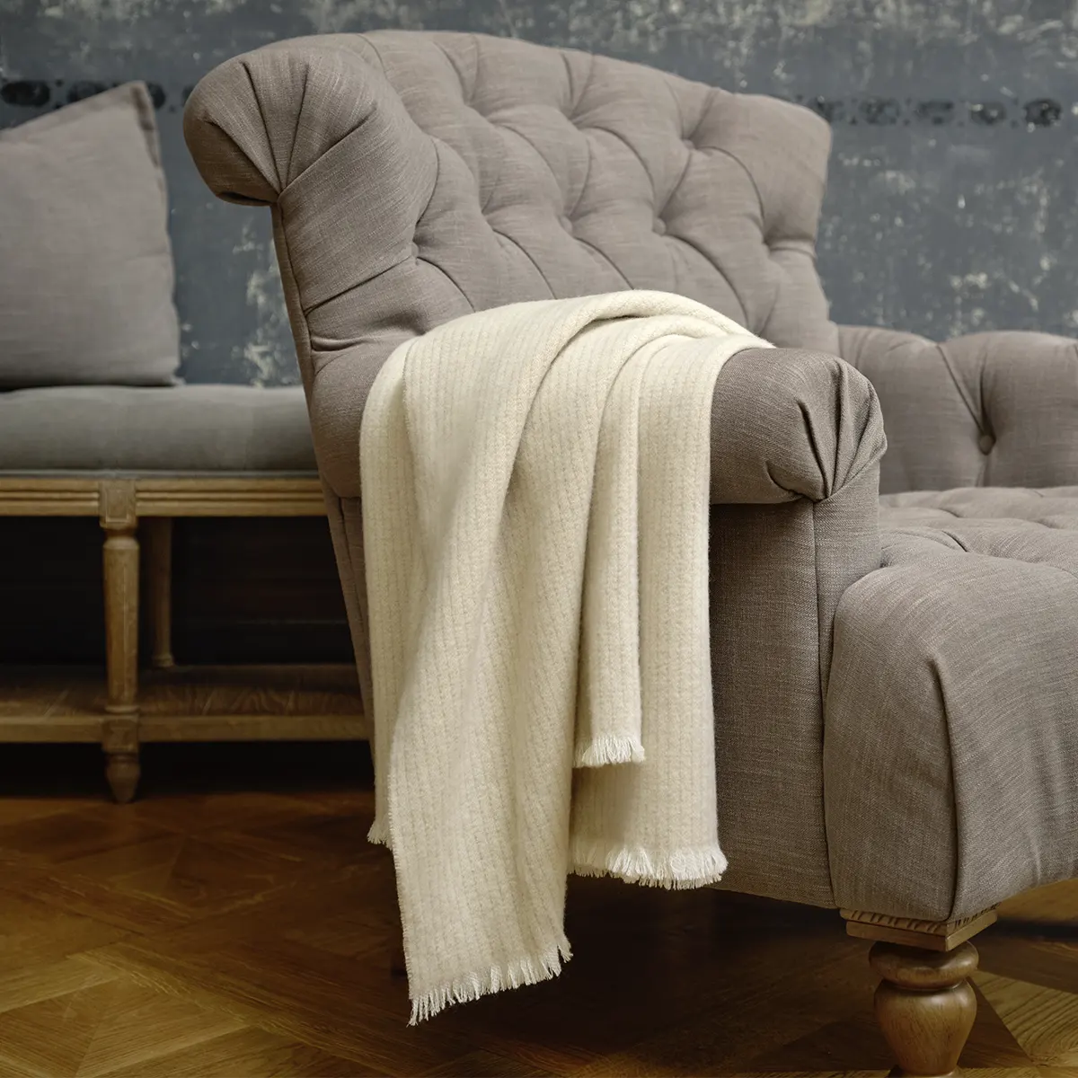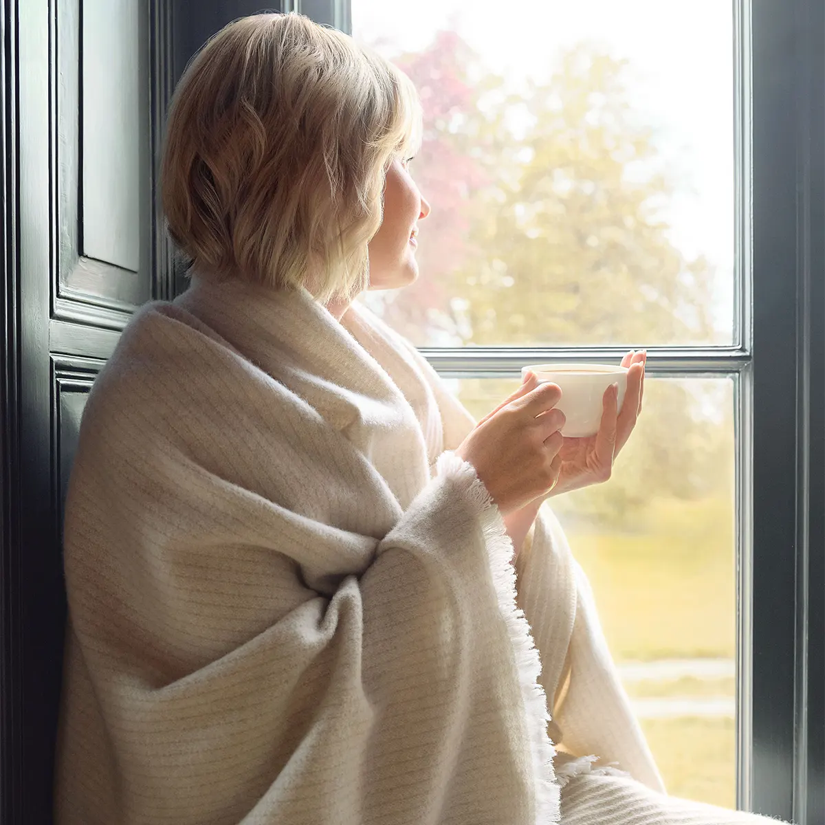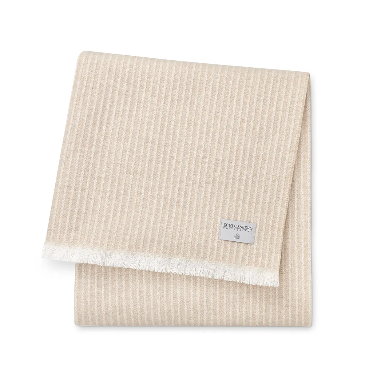 Eine wärmende Kombination aus Wolle und Kaschmir, die sich wie eine liebevolle Umarmung um die Schultern legt, wenn sich frühmorgens der Herbstnebel lichtet und der Tag erwacht. Das ELIAS Plaid in den Farben beige und gris ist in jeder Hinsicht ein Lieblings-Begleiter für Momente der Ruhe und Gelassenheit.