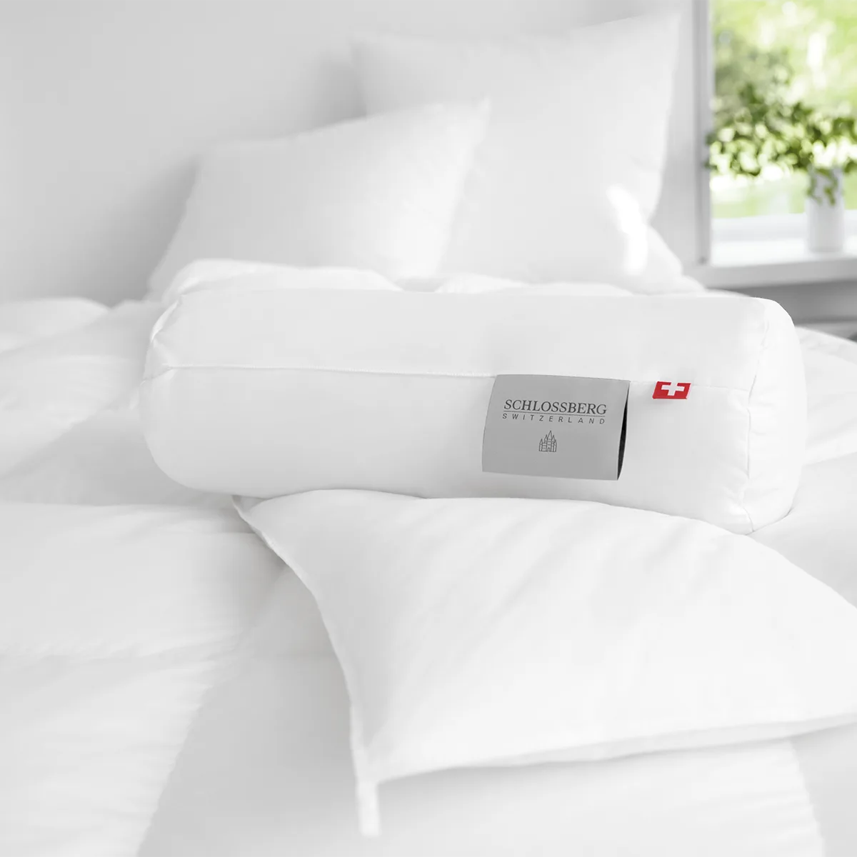 Eine besonders weiche Nackenrolle aus 90% Daunen und 10% Federchen, welche den Kopf stützt und die Wirbelsäule wirksam entlastet. Mit derselben Füllung ist auch ein angenehmes weiches Kissen erhältlich.