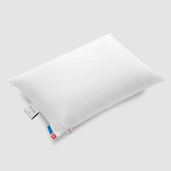 regulierungskonzept nimmt die überschüssige Wärme auf und speichert sie. Wird es kälter, wird diese wieder abgegeben und bietet so während der ganzen Nacht eine ideale Komforttemperatur. Im Aussenbereich ist das Kissen mit 90% weisser, neuer Gänsedaunen und 10% Federchen gefüllt, während sich im Innenbereich 100% neue, weisse Gänsefederchen befinden. Das Kissen besitzt einen atmungsaktiven und hydrophilen Baumwoll-Batist-Bezug und ist aufgrund des natürlichen Milbenschutzes NOMITE® besonders für Allergiker geeignet.