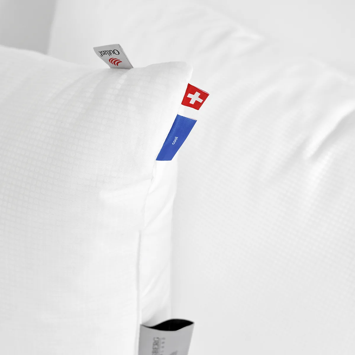 Das Lord Outlast 3-Kammerkissen überzeugt mit einem temperaturregulierenden Outlast®-Hightech-Gewirke (58% Polyester, 42% Silikon mit Phase Change Material). Dieses ist auf einer Seite unterhalb des Bezuges eingelegt und kann so unmittelbar seine Wirkung entfalten. Das revolutionäre Outlast®-Temperatur-