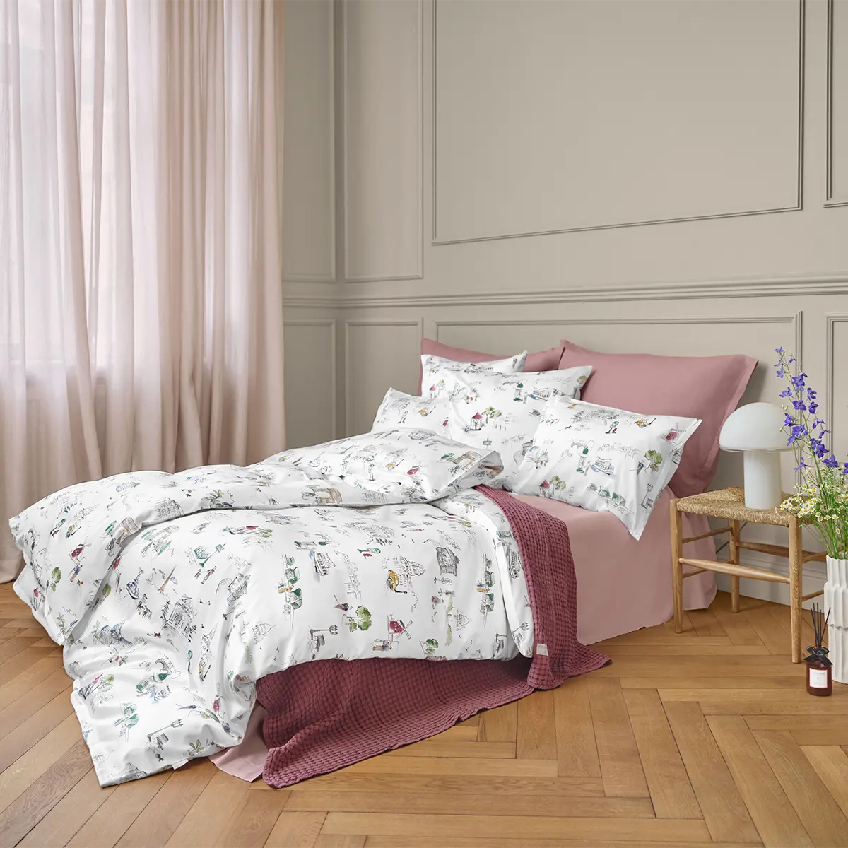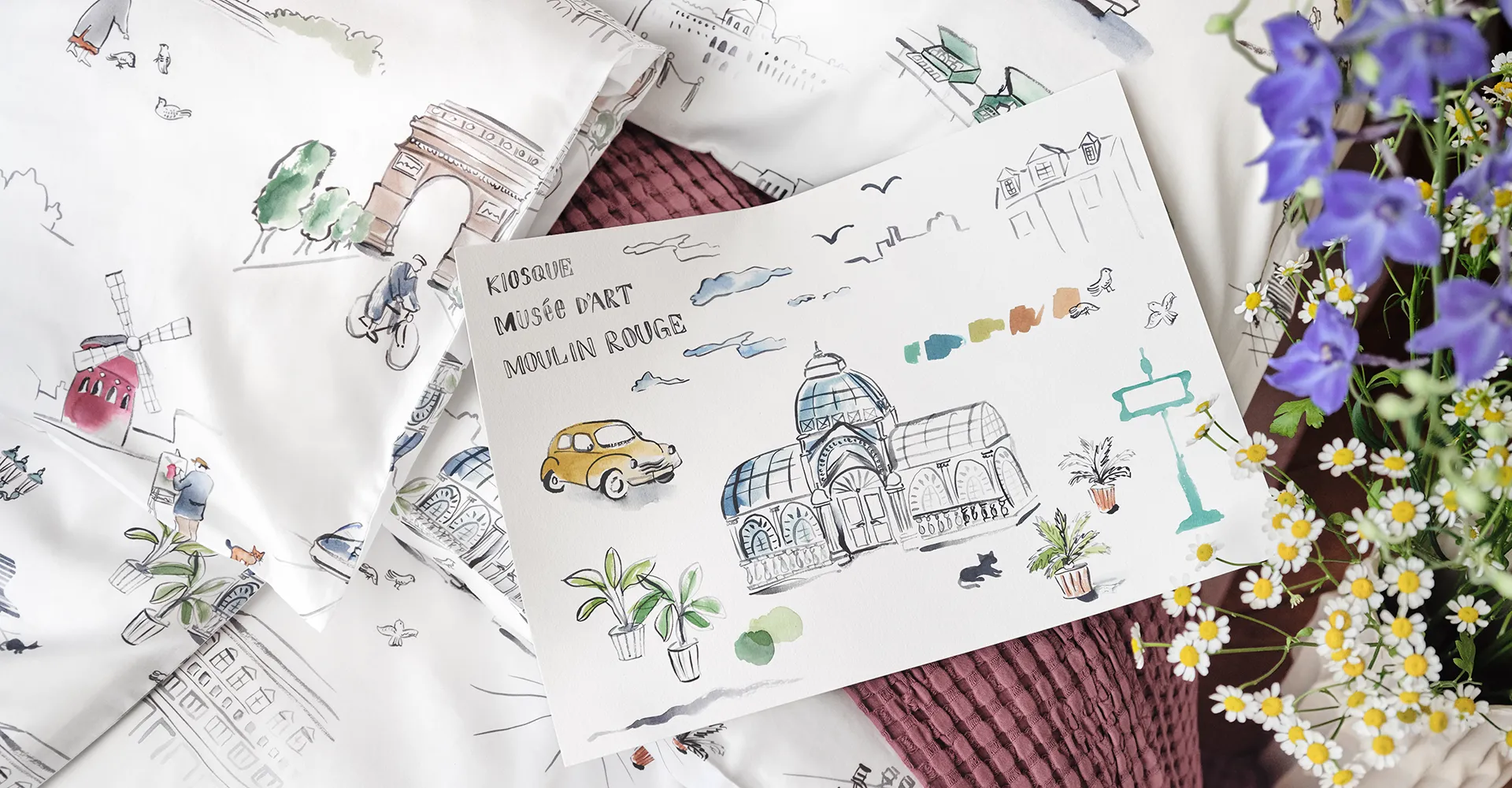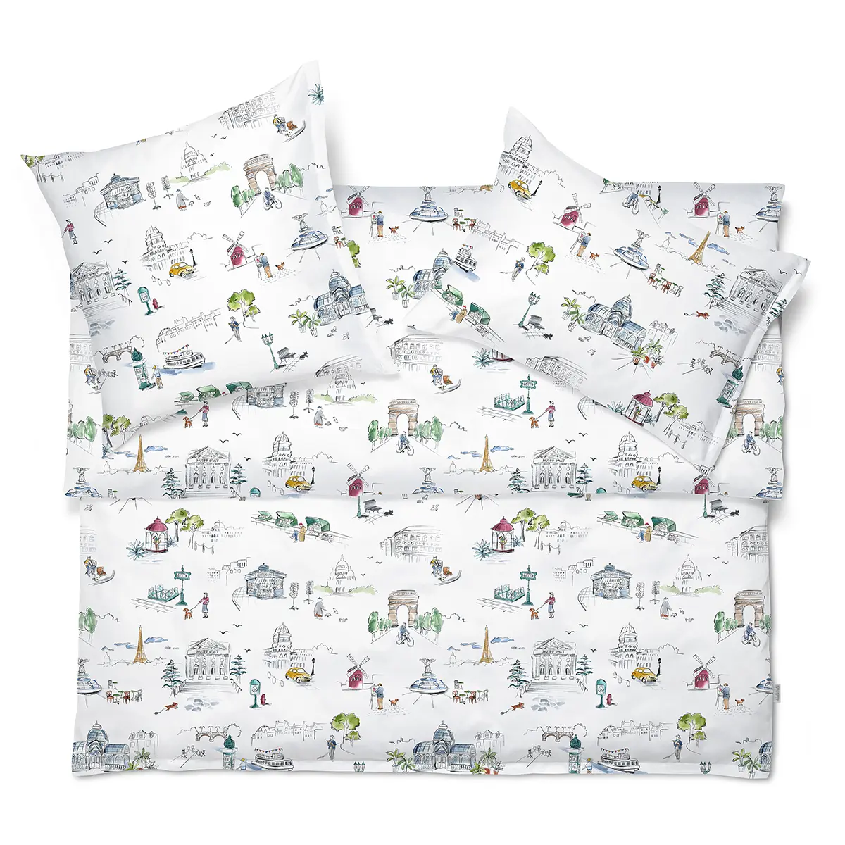 Eine Liebeserklärung eingefangen auf der illustrativen Bettwäsche PARIS MON AMOUR, erzählt sie von einer vergangenen Reise in die berühmte Stadt der Liebe und Lichter. Liebevoll vereinen sich die Souvenirs und Erinnerungen aus der neuen Frühling | Sommer Kollektion auf dieser Bettwäsche zu einem erzählerischen Spaziergang entlang der Seine.