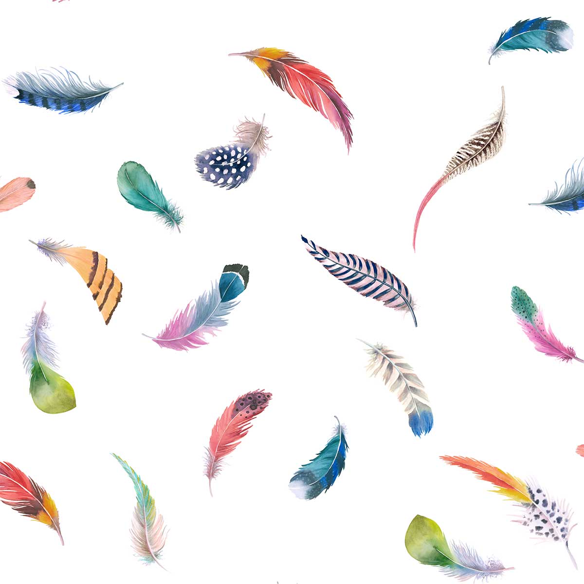 Leuchtend bunte Federn werden von einem leichten Windstoss zum Tanzen und Schweben über den weissen Bettwäsche Fond von TINKA gebracht. Die in Aquarell gezeichneten Schmuckfedern stolzer Paradiesvögel präsentieren sich in hübsch gepunkteter, farbintensiv gestreifter oder auch unifarbener Pracht.