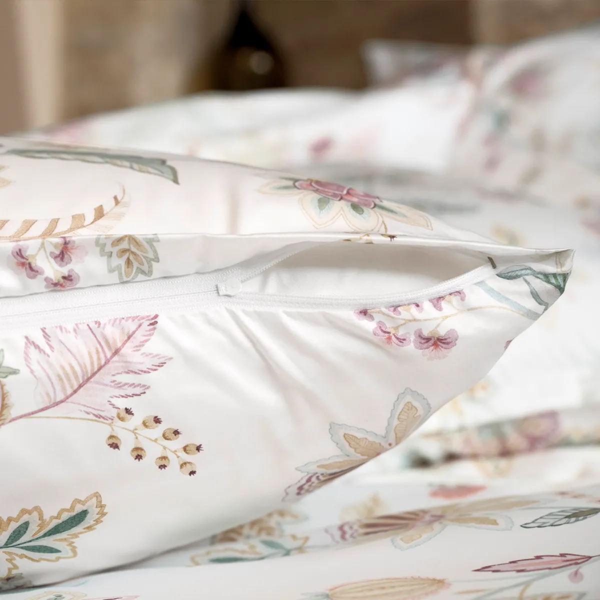 When the low sun casts its shadows through the open window and a warm summer night is on the way, IMA adds a subtle touch of the Far East. This classic ornamental bed linen with stylised flowers and leaves comes in a muted, elegant colour scheme of sage green, sand beige and powdery aubergine, combined with a fresh coral accent, and is sure to make you dream of your next holiday every night.