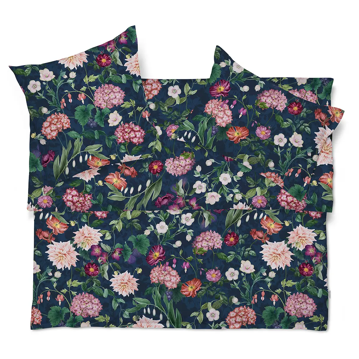OPHELIA bed linen adorns every bedroom like a still life painting – dramatic, mysterious and almost beguiling, this floral splendor presents itself on a powdery beige or midnight blue background. Whether you indulge in the berry magic of grapes and figs in deep blue-violet or in summer nostalgia and admire the generous hydrangea blossoms in dusky pink, nothing stands in the way of the anticipation of the next restful sleep or opulent daydreams.