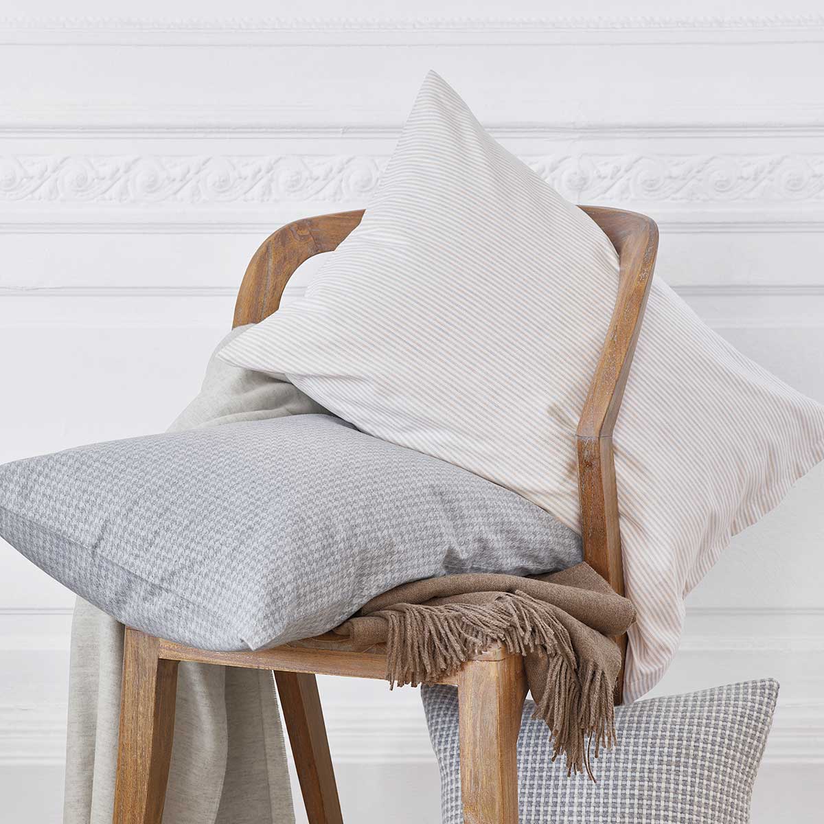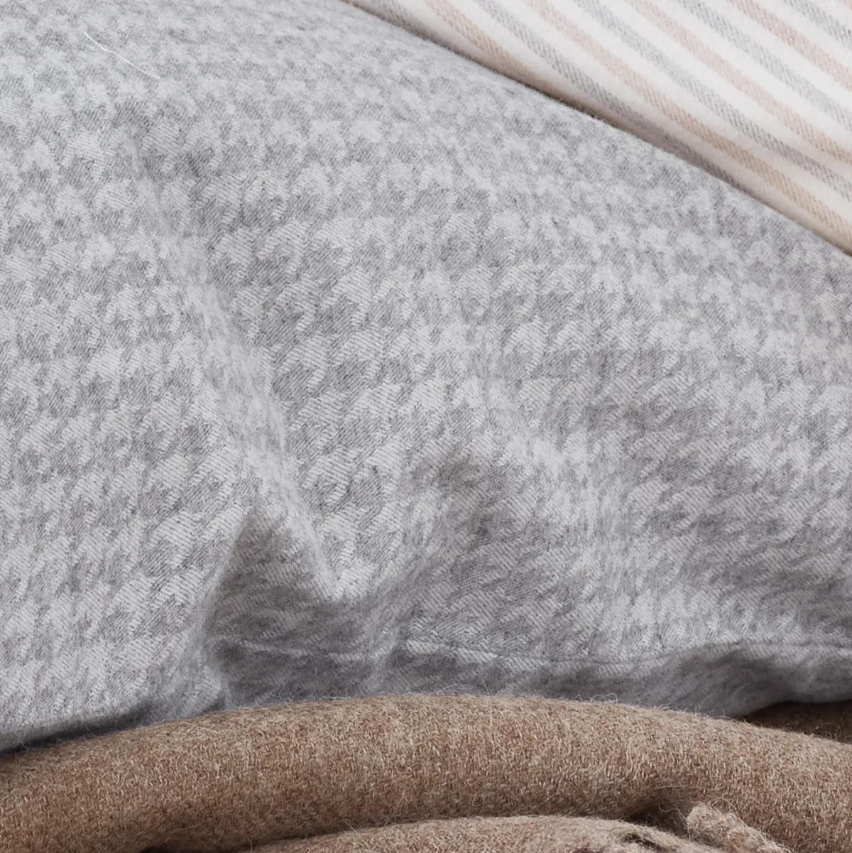 THEO extends the Schlossberg CASUAL LUXURY collection with a new bed linen design in soft flannel made of pure cotton, and delights with its soft feel. The graphic houndstooth pattern in autumnal gray gets its softness from the gentle roughening of the surface and is a timeless classic. The result is a finely woven jacquard pattern in quality flannel, that is warm, breathable, easy-care and non-iron.