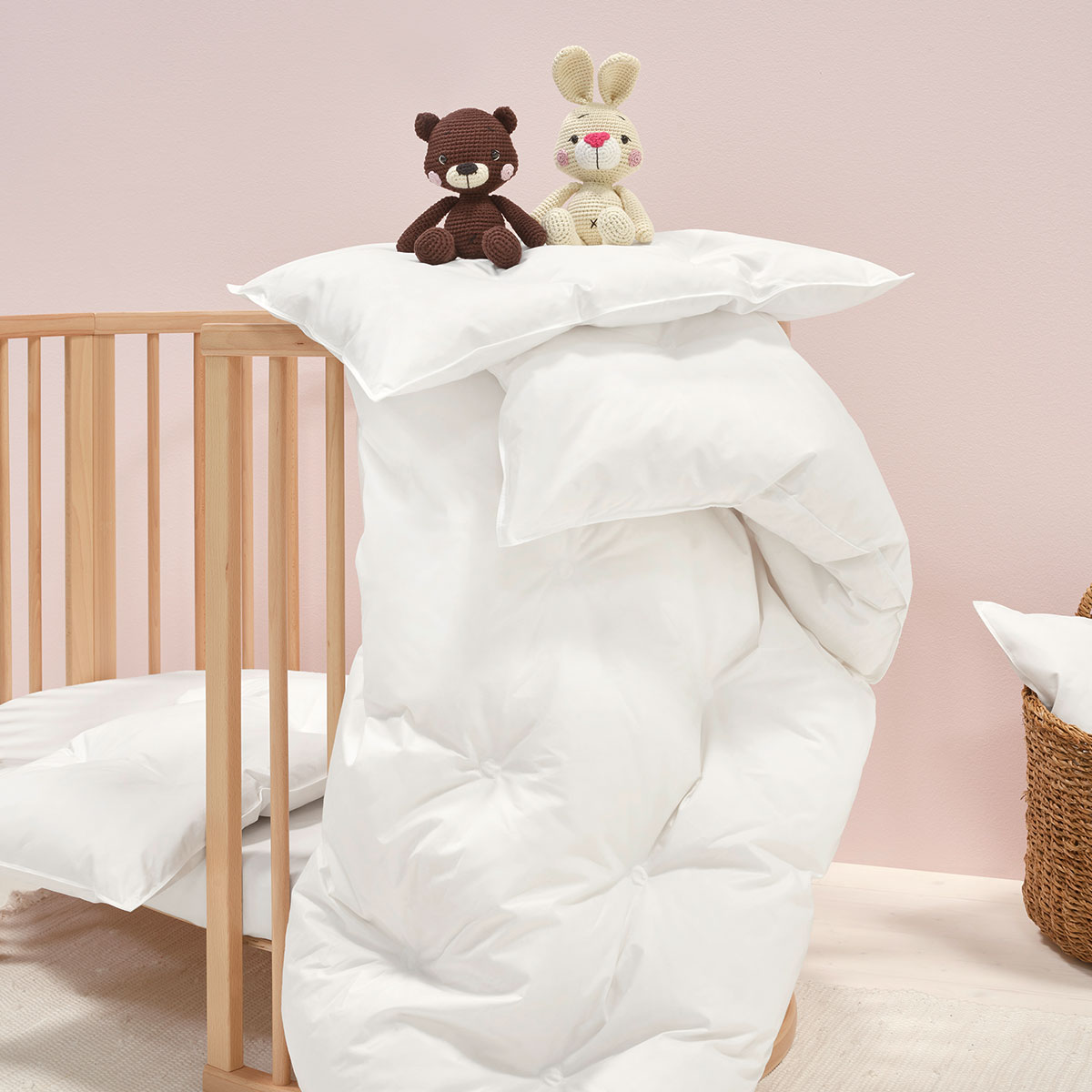 Our LUCA duvet is made of 90% new, pure, white, European goose down and 10% feathers. The fluffy goose down used in this duvet guarantees a high degree of comfort, whilst ensuring that moisture is wicked away yet keeping in the warmth. The quilting technique gives the duvet a special puffiness, while the hydrophilic cotton batiste cover is extremely breathable. Recommended for children of three years and above. Swiss Made.