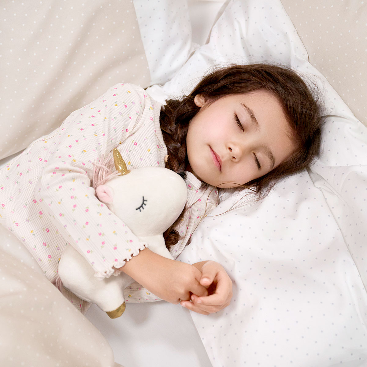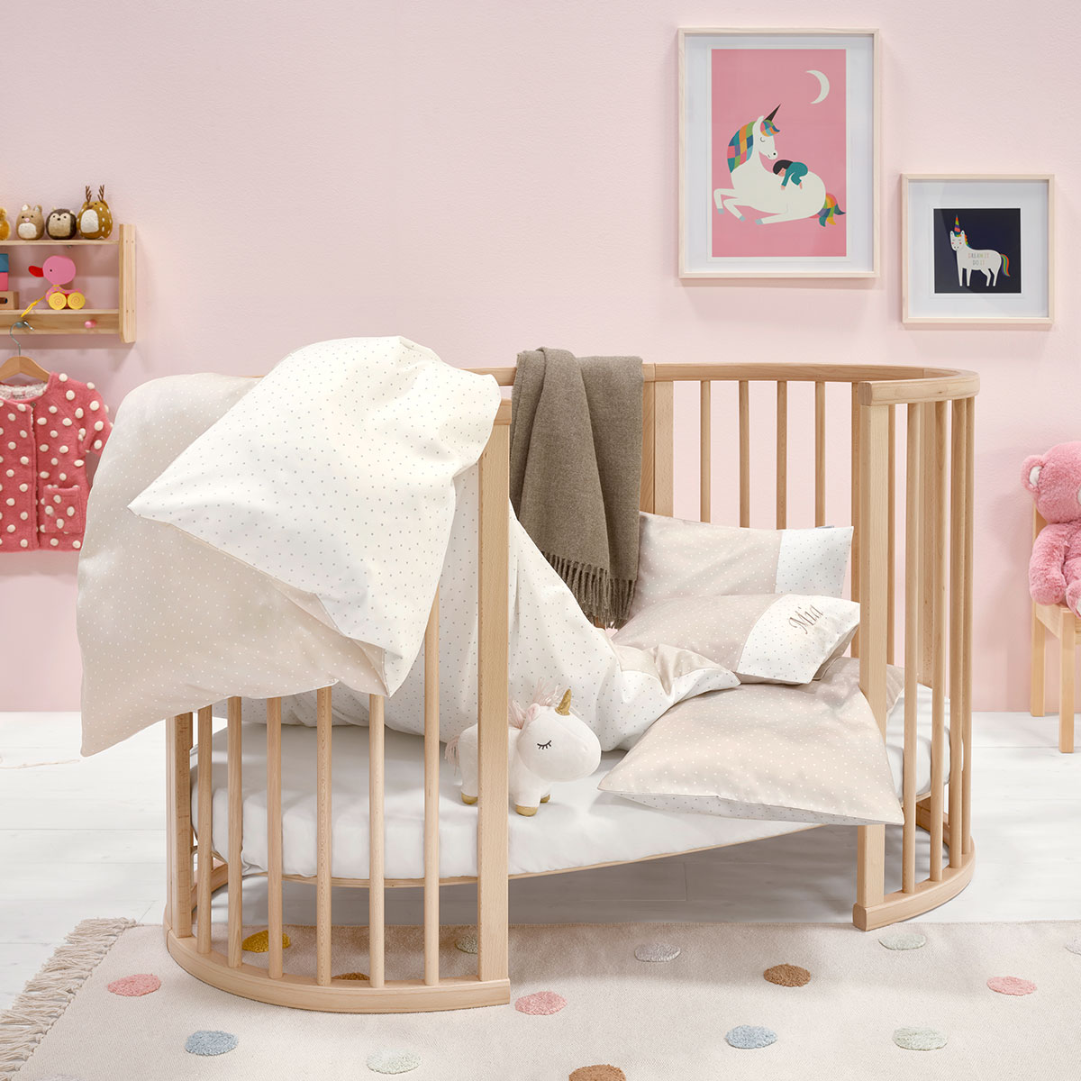 Verspielt, auf unifarbenem Bettwäsche-Fond in Bio-Baumwolle-Qualität tänzeln kleinste Punkte in wunderbarer Leichtigkeit auf dieser Kinderbettwäsche. In beige-weiss gehalten entsteht so im bunten Alltagsabenteuer ein leiser Lieblings-Ruhe-Rückzugsort für die Kleinsten.